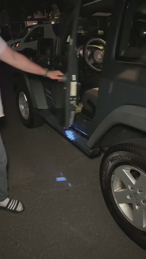 It’s an HD car door welcome light that projects a light pattern on the ground when you open the door—making your car look more premium and fun.